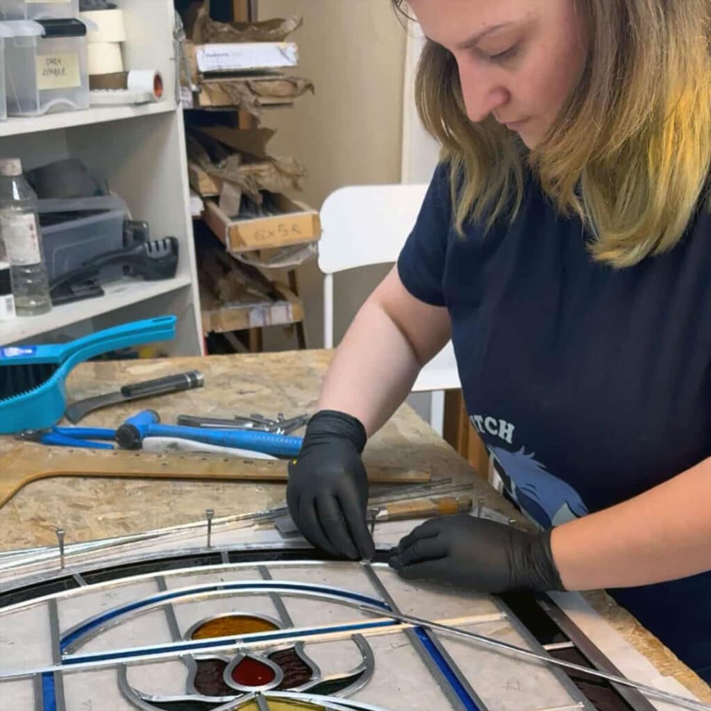 You can expect to learn skills such as glass cutting, lead shaping and cutting, soldering and cementing. You will learn about the countless glass types and textures, and will be handling glass that is between 70-150 years old on a daily basis. All work is done in the traditional way by hand.