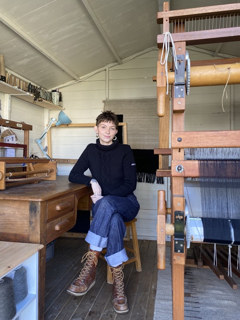 Scarlett Farrer is a woven textile designer specialising in handwoven fabrics and hand spun yarns. Her work focuses on sustainable, ethical and traditional practices from the sourcing of local wool and fleeces, through to the processing stages of the raw fleeces, to the weaving and finishing of the fabrics.